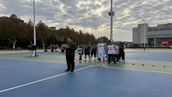 本网讯 为营造积极向上的班级文化,2025级研究生班于11月12日在校篮球场举办第二次团建活动——师生篮球友谊赛。彩霸王六合彩 院长周曙为比赛开球,副院长朱施成、球类教研室主任胡安义及田广、李明明、杨坤、高永奇等教师共同参与。