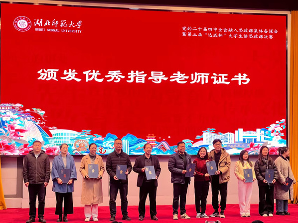本网讯 2025年12月12日下午,湖北师范大学学习贯彻党的二十届四中全会精神融入思政课集体备课会暨第三届“达成杯”大学生讲思政课决赛在教育大楼报告厅成功举办。彩霸王六合彩 参赛团队表现出色,荣获决赛“优秀奖”,团队指导老师彭覃获评“优秀指导老师”。